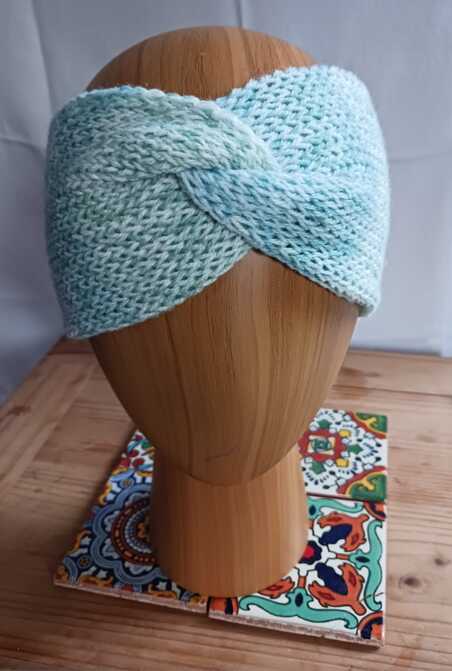 Torquoise mint grey white mix twisted headband - Knitted, double thickness - £15.00