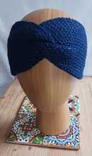 Midnight blue with glitter twisted headband - Knitted, double thickness
