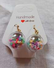 Multi-Coloured Sequin Glass Bauble Earrings - Glass bauble containing multi-coloured sequin stars
